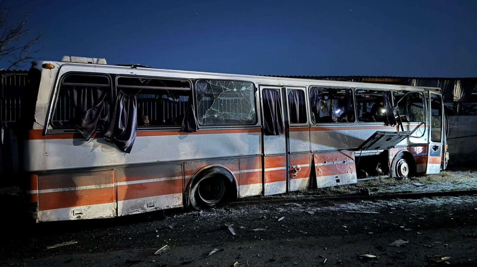 The primary Shahed hit close to the bus, the driving force misplaced management underneath the influence of the blast wave and crashed right into a fence, folks started leaving the bus, serving to one another.